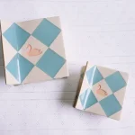 Who wants to watch Barbie Swan Lake? The Swan Patchwork Claw features baby blue diamonds inlaid on a solid white background with an engraved and painted peach swan.